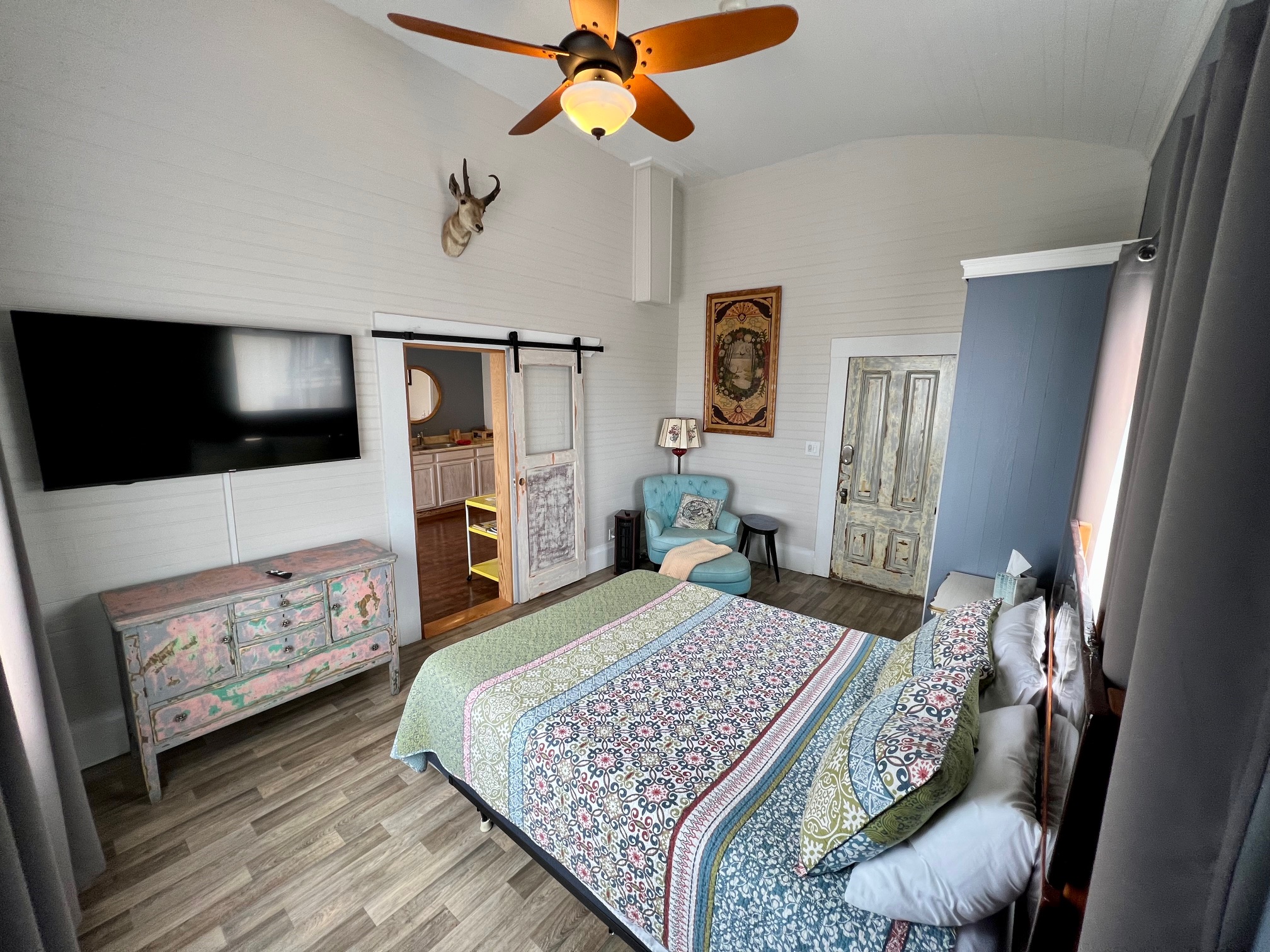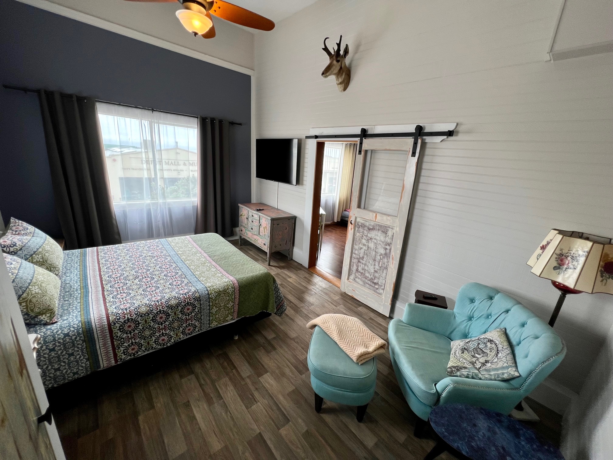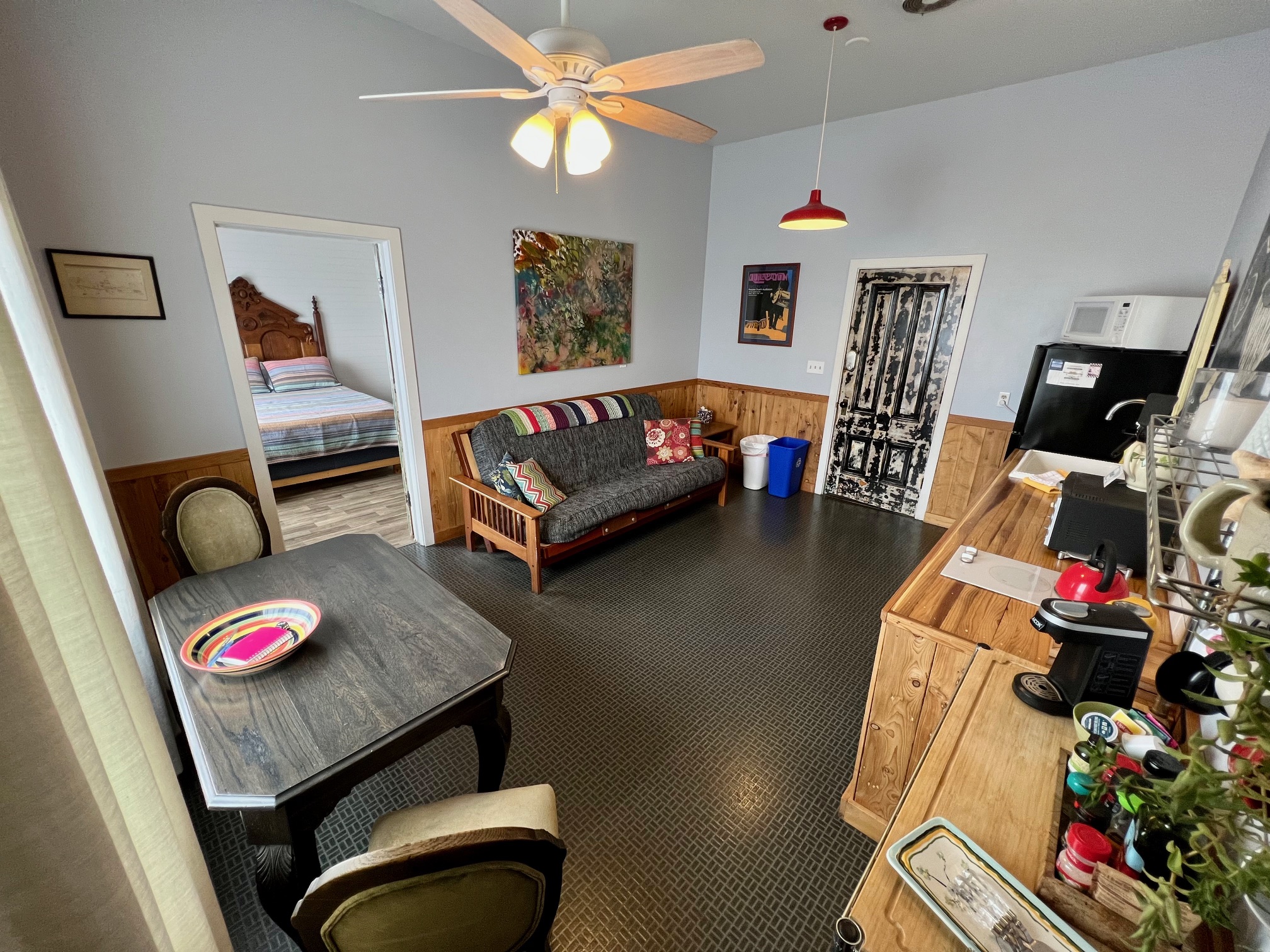 The Cordelia & The Virginia are two room apartments each one has it’s own private bathroom just across the common hall. The building was originally built in 1887, and is full of local history and charm. With partial ocean views, high ceilings, original doors, and eclectic furnishings you won’t find anything else like it.